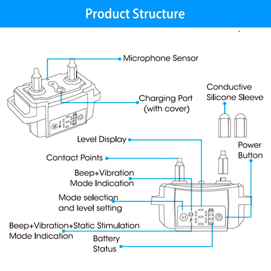 Rechargeable Waterproof Dog Bark Collar with Automatic Identification and Dual Mode Stimulation (Beep, Vibration, Static) - 6 Intensity Levels